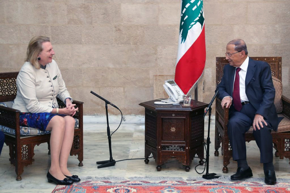 Հանրապետութեան նախագահ զօր. Միշել Աուն երէկ ընդունեց Աւստրիոյ արտաքին գործոց նախարար Քարին Քնայսըլը, որուն հետ քննարկեց լիբանանեան եւ շրջանային իրադարձութիւններն ու երկկողմանի յարաբերութիւնները ամրապնդելու կարելիութիւնները: