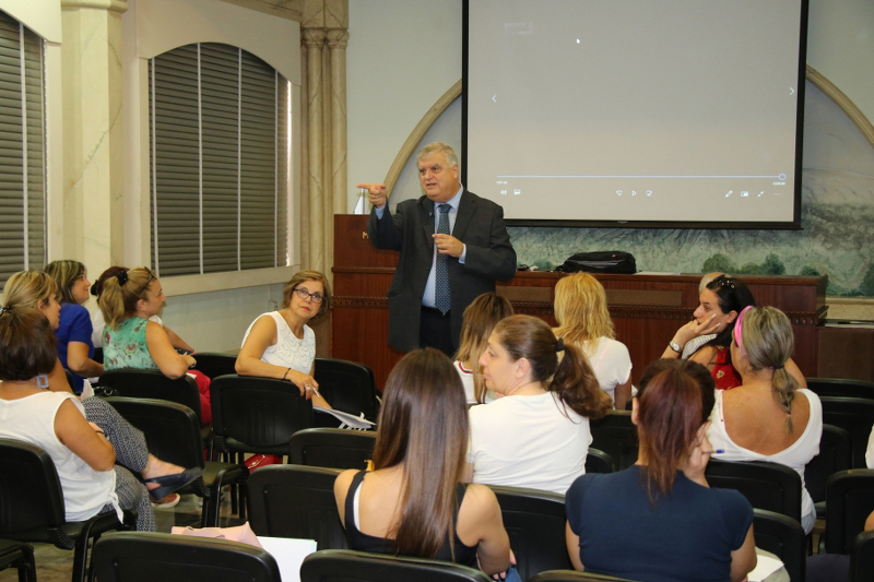 Առաջին սեմինարին կրթական խորհրդատուութեան «Ուազնաթ» կազմակերպութեան տնօրէն Սամիր Քոնսթանթինը Մեսրոպեանի ուսուցիչներուն հետ քննարկեց դասարանային կառավարման խնդիրները եւ ներկայացուց այդ խնդիրներու լուծման հայեցակարգ` հիմնուած մանկավարժական մօտեցումներու եւ աշակերտներու տարիքային հոգեբանութեան առանձնայատկութիւններուն վրայ: Դասախօսին առաջնորդութեամբ, ուսուցիչները խմբաւորեցին դասարանի կառավարման մէջ նկատուած խնդիրները եւ հաստատեցին որոշակի ուղեցոյց` իւրաքանչիւրի լուծման համար: