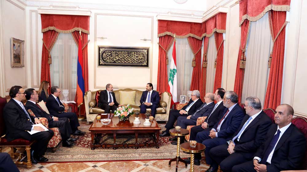 Հայաստանի Հանրապետութեան վարչապետի պաշտօնակատար Նիկոլ Փաշինեան կէսօրուան ժամը 1:30-ին հիւրը եղաւ վարչապետ Հարիրիի, որուն հետ քննարկեց տեղական, միջազգային մակարդակի վրայ արձանագրուած զարգացումները, ինչպէս նաեւ երկու երկիրներուն միջեւ յարաբերութիւնները: Հանդիպումին ներկայ գտնուեցան նաեւ ՀՅԴ Լիբանանի Կեդրոնական կոմիտէի ներկայացուցիչ, երեսփոխան Յակոբ Բագրատունի եւ զբօսաշրջութեան նախարար Աւետիս Կիտանեան: