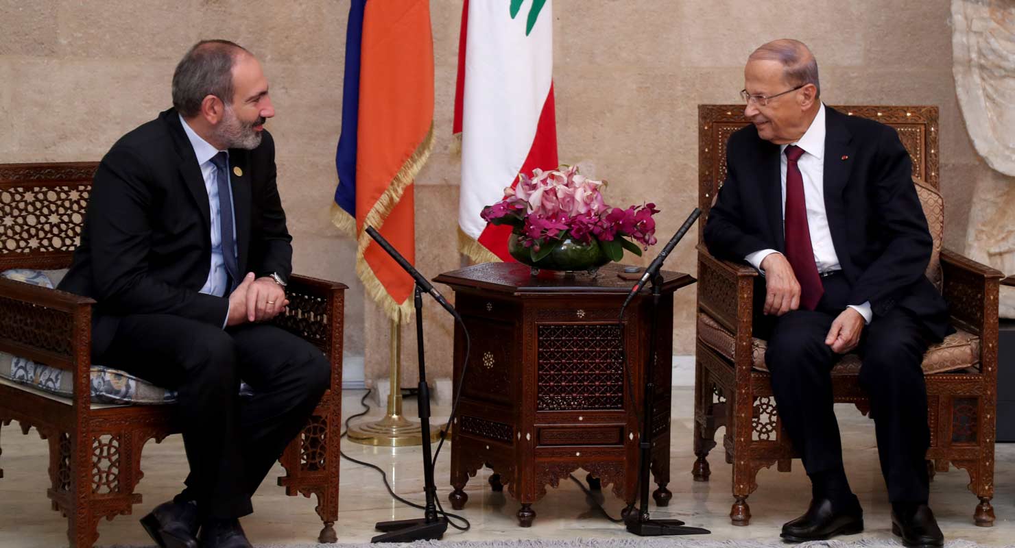 Նախագահ Աուն ողջունեց վարչապետի պաշտօնակատար Փաշինեանի Լիբանան այցելութիւնը եւ շնորհաւորեց զայն` նախորդ շաբաթ Երեւանի մէջ գումարուած Ֆրանսախօս երկիրներու կազմակերպութեան 17-րդ վեհաժողովի յաջողութեան համար` շնորհակալութիւն յայտնելով այն ջերմ ընդունելութեան համար, որուն արժանացաւ Լիբանանի պատուիրակութիւնը Հայաստանի մէջ կեցութեան օրերուն: Ան դրուատեց Լիբանանի եւ Հայաստանի սերտ յարաբերութիւնները, յատկապէս ՖԻՆԻՒԼ-ի միջազգային խաղաղապահ ուժերու շարքերուն մաս կազմող հայ խաղաղապահ  ուժերուն առաքելութիւնը: Նախագահ Աուն նաեւ յատուկ կերպով անդրադարձաւ այն կարեւոր եւ ազդու դերակատարութեան, որ ունին լիբանանահայերը Լիբանանի քաղաքական եւ տնտեսական բնագաւառներուն մէջ, մանաւանդ որ անոնք կը հանդիսանան Լիբանանն ու Հայաստանը իրար կապող կամուրջ մը: