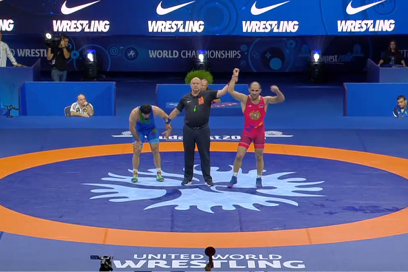 Պրոնզէ մետալին համար իր մղած պայքարին ընթացքին հայ ըմբիշը 6-1 արդիւնքով հաստատ յաղթանակ մը արձանագրեց 22 տարեկան ազրպէյճանցի` Իսլամ Ապասովի դէմ: Այս ճակատումին աւարտին ազրպէյճանցին իր զայրոյթէն չկրցաւ զսպել իր արցունքները: