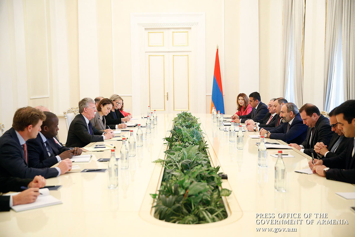 Իսկ Երեւանի մէջ Պոլթընի խօսակցութիւնները աւելի բազմաբնոյթ եղան` ընդգրկելով թաւշեայ յեղափոխութիւնը, ժողովրդավարութեան ամրապնդման հնարաւորութիւնները, ռուսական զէնքի գնման կապուած ամերիկեան պատկերացումները, Հարաւային Կովկասի մէջ Հայաստանի դերակատարութիւնը` իբրեւ Իրանի սահմանակից պետութիւն մը եւ այլ խնդիրներ, որոնք կը գտնուին ամերիկեան օրակարգին վրայ: «Միացեալ Նահանգներ, նախագահ Տանըլտ Թրամփի վարչակազմը Հայաստանի հետ յարաբերութիւնները բարձր առաջնահերթութիւն մը կը համարեն», յայտարարեց Պոլթըն եւ բացայայտեց, որ վարչապետի պաշտօնակատար Նիկոլ Փաշինեանին հետ արծարծած է նոյնիսկ ռուսական զէնքերու գնման խնդիրը` խորհուրդ տալով, որ Երեւան չկաշկանդուի պատմական կաղապարներով եւ դիմէ նաեւ Միացեալ Նահանգներու` զէնք ստանալու համար: «Փաշինեանին ըսի, որ ամերիկեան զէնքին որակը շատ աւելի լաւ է ռուսականէն», նշեց Պոլթըն` «Ազատութիւն» կայանին տրուած հարցազրոյցին ընթացքին: