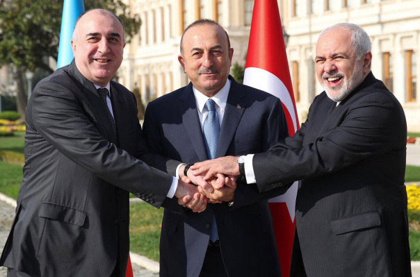 Իրանի, Թուրքիոյ եւ Ազրպէյճանի արտաքին գործոց նախարարներ` Մոհամետ Ժաւատ Զարիֆ, Մեւլութ Չաւուշօղլու եւ Էլմար Մամետեարով, երէկ Պոլսոյ մէջ տեղի ունեցած եռակողմ հանդիպման ժամանակ որդեգրած են հռչակագիր մը, որուն մէջ անդրադարձ կը կատարուի նաեւ Արցախի հարցին:
