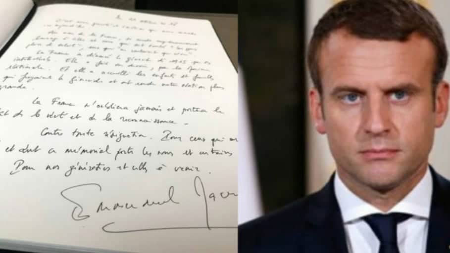 Հայոց ցեղասպանութեան թանգարանի պատուաւոր հիւրերու յուշամատեանին մէջ Ֆրանսայի նախագահը հետեւեալ գրառումով անգամ մը եւս իր զօրակցութիւնը եւ յուզումը կը յայտնէ հայ ժողովուրդին. «Ֆրանսայի անունով ես յարգանքի տուրք կը մատուցեմ բոլոր անոնց, որոնք ինկան «արեւն առած իրենց աչքերուն մէջ», անոնք, ովքեր «միայն ապրիլ կ՛ուզէին»: Ֆրանսան քողազերծած է Ցեղասպանութիւնը դեռ 1915 թուականին մտաւորականներու կողմէ: Եւ ան ընդունած է երեխաներ եւ ընտանիքներ, որոնք ճողոպրած են Ցեղասպանութենէն եւ անոնք մեր ազգը աւելի պանծացուցին: Ֆրանսան երբեք պիտի չմոռնայ եւ պիտի պայքարի ճշմարտութեան ու ճանաչման համար: Այս տխուր խոնարհումը անոնց համար, որոնք ինկան: Մեր եւ գալիք սերունդներուն համար»: