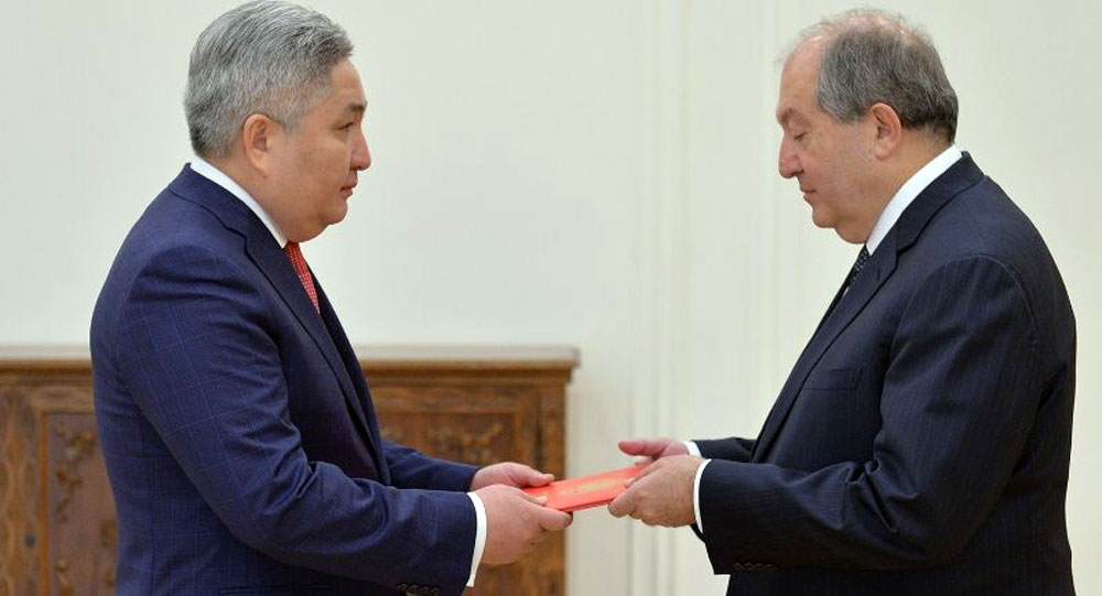 Հանրապետութեան նախագահ Արմէն Սարգսեանին երէկ իր հաւատարմագիրները յանձնած է Հայաստանի մէջ Խըրխըզիստանի Հանրապետութեան նոր նշանակուած դեսպան Պոլոթ Օթունպայեւը (նստավայրը` Մոսկուա):