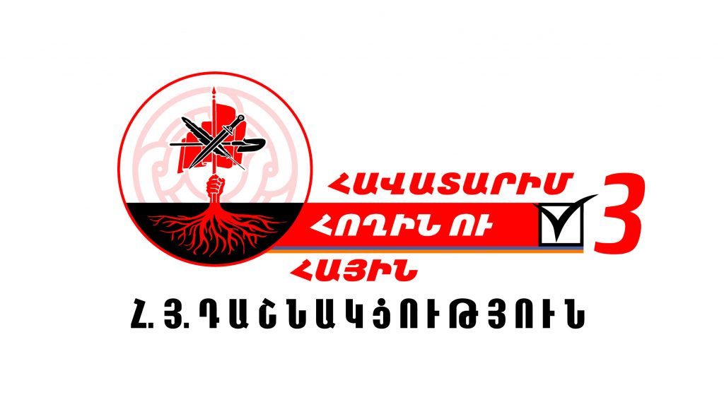 <a href="https://www.aztagdaily.com/wp-content/uploads/2018/11/ՀՅԴ-Նախընտրական-լոգո-1024x576.jpg"><img class="size-full wp-image-417238 aligncenter" src="https://www.aztagdaily.com/wp-content/uploads/2018/11/ՀՅԴ-Նախընտրական-լոգո-1024x576.jpg" alt="" width="1024" height="576" /></a> ՀՅԴ նախընտրական գրասենեակը հաստատած է 9 դեկտեմբերին տեղի ունենալիք խորհրդարանական արտակարգ ընտրութիւններուն <strong>ՀՅ Դաշնակցութեան տարբերանշանն ու կարգախօսը` «Հաւատարիմ հողին ու հային»:</strong>