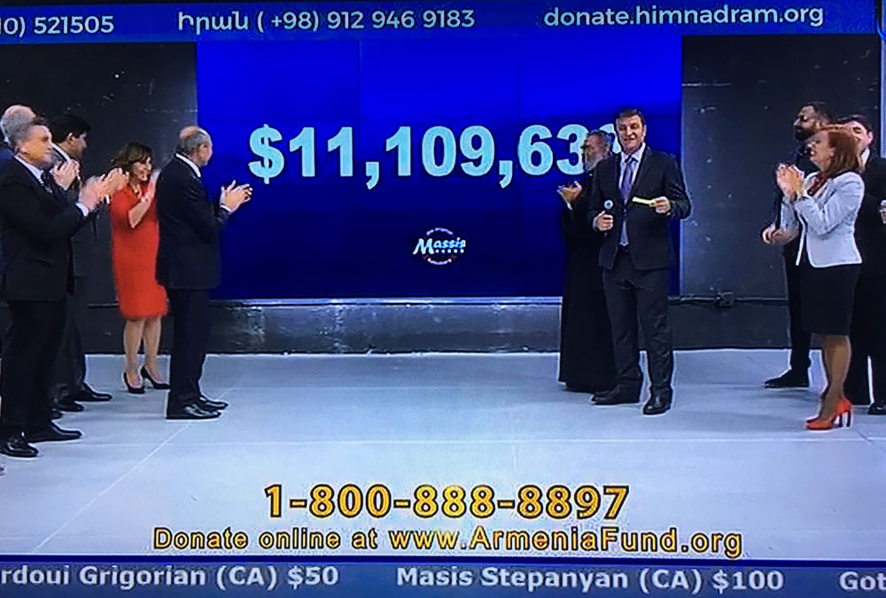 Լոս Անճելըսի մէջ տեղի ունեցած «Թելեթոն 2018»-ի ընթացքին «Հայաստան» համահայկական հիմնադրամին նուիրաբերուեցաւ 11.109.633 տոլար: