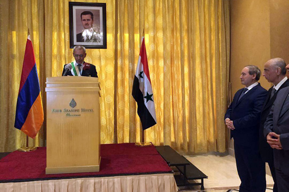Ձեռնարկին ներկայ էին` Սուրիոյ առաջին արտաքին գործոց փոխ նախարար Ֆէյսալ Միքտատը, Հալէպի Հայաստանի Հանրապետութեան գլխաւոր հիւպատոս Արմէն Սարգսեանը, Սուրիոյ մէջ հաւատարմագրուած դեսպաններ եւ դիւանագետներ, Սուրիոյ արտաքին գործոց նախարարութեան բարձրաստիճան պաշտօնեաներ, Սուրիոյ մէջ Հայաստանի Հանրապետութեան դեսպանութեան աշխատակիցներ, լրագրողներ: