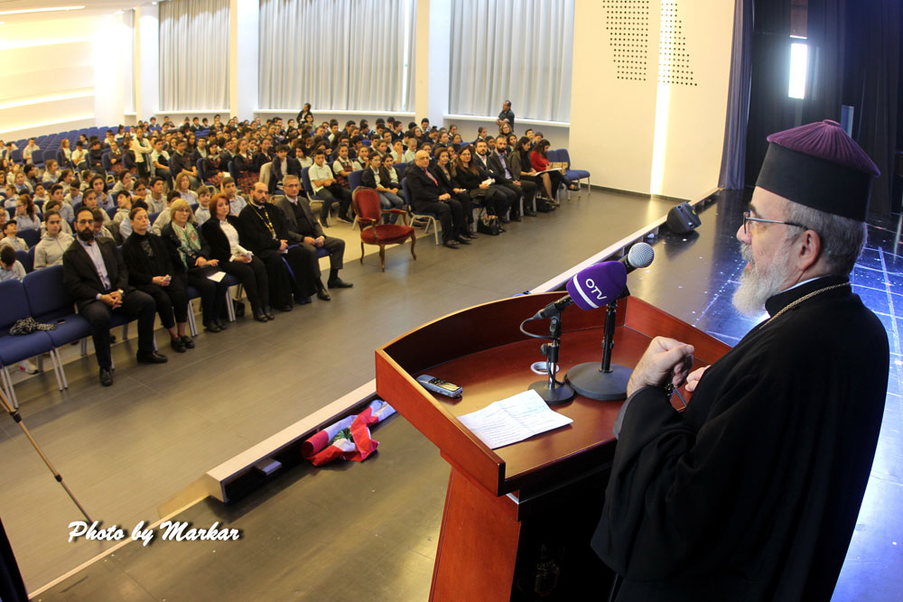 «Լիբանանը եւ Հայաստանը մեզի համար կը դառնան գերագոյն արժէքներ մեր պատմութեան իսկ վկայութեամբ: Երբ լիբանանցիին ու լիբանանահայուն արիւնը թափուեցաւ եւ կը շարունակուի թափուիլ Լիբանանի ազատութեան ու անկախութեան համար, պատմութիւնը կը վկայէ, թէ այդ արիւնը թափուեցաւ ազատագրուելու համար նոյն հասարակաց թշնամիէն, որ նոյնինքն մեր դարաւոր թշնամին է` թուրքը», շեշտեց առաջնորդ սրբազանը` հաստատելով, որ այնքան ատեն որ մեր Հայ դատը կը շարունակենք հետապնդել եւ կը շարունակենք պայքարիլ մեր արդար իրաւունքներուն համար, կը շարունակենք պայքարիլ ամբողջական Հայաստանի տեսիլքով, այդ արիւնը պիտի շարունակէ մեզ անհանգիստ պահել, որպէսզի հասնինք մեր արդար իրաւունքներու ձեռքբերման: