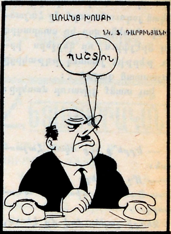 Անցնող տասնամեակներուն Հայաստանի մեր ժողովուրդը ինչե՜ր ըսես չքաշեց ստորնութեամբ տեղ հասած ստորադաս պաշտօնեաներու կամայականութենէն, որոնց դէմ զինաթափող զուարթութեամբ մը կը պայքարին այսօր մեր երկրին ծաղրանկարիչները, երգիծագիրներն ու առակագիրները: