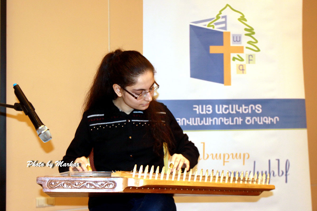 Գեղարուեստական յայտագիրով, Ազգային Միացեալ վարժարանէն Արազ Էլէյճեան ասմունքեց Պեպօ Սիմոնեանի «Արմատ» բանաստեղծութիւնը, Ազգային Եղիշէ Մանուկեան քոլեճի երգչախումբը մեկնաբանեց «Ով մեծասքանչ դու լեզու», «Խօսք իմ որդուն», «Ջան Հայաստան» երգերը, Համազգայինի «Բարսեղ Կանաչեան» երաժշտական քոլեճէն Կայէլ Գրիգորեան քանոնի վրայ նուագեց երաժշտական կտորներ, նաեւ տեսերիզի վրայ ցուցադրուեցաւ օրուան խորհուրդը ներկայացնող թատրոն մը` կատարողութեամբ Ազգային վարժարաններու աշակերտութեան: