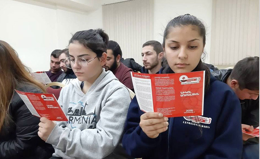 ՀՅ Դաշնակցութեան համամասնական եւ վարկանշային ցուցակով թեկնածու առաջադրուած` ՀՅԴ «Նիկոլ Աղբալեան» ուսանողական միութեան անդամ Վանուշ Ահարոնեանը ուսանողների հետ հանդիպման ժամանակ ներկայացրեց կուսակցութեան նախընտրական փլաթֆորմը, որից յետոյ կայացաւ փլաթֆորմի շուրջ զրոյց-քննարկում: