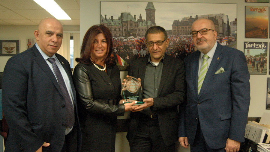 Հարցազրոյցի աւարտին հանդիպման ներկայ ՀՄԸՄ Քանատայի Շրջանային վարչութեան ատենապետ Լիոնի Սարմազեանը եւ վարչութեան անդամ Պերճ Աթոլիկեանը յատուկ յուշագիրով մը պատուեցին «Հորիզոն»-ը` հայ գիր ու գրականութեան տարածման մէջ անոր երկարամեայ առաքելութեան համար: