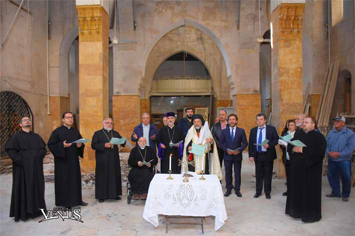 Սուրիոյ պատերազմի ընթացքին վերոնշեալ երեք եկեղեցիներն ալ, այլ եկեղեցիներու եւ համայնքային կառոյցներու կարգին, վնասներ կրած էին: Վերաշինութեան աշխատանքներու ընթացքին ծանօթանալու եւ իրազեկ ըլլալու անհրաժեշտութենէն մեկնելով` անոնք նախ այցելեցին Հայ աւետարանական վերանորոգուող եկեղեցի, ուր վերապատուելի Սելիմեան բացատրեց գործին ընթացքը: Ապա անոնք մատուցեցին միասնական օրհնութեան աղօթք: Այցելութեան յաջորդ վայրը Հայ առաքելական մայր եկեղեցին էր, ուր առաջնորդ սրբազանը իր կարգին ներկայացուց նորոգութեան գործընթացը, եւ նոյնպէս կատարուեցաւ աղօթքի մատուցում: Այնուհետեւ անոնք այցելեցին Հայ կաթողիկէ աթոռանիստ եկեղեցի, ուր Պետրոս արք. Միրիաթեանը լուսաբանութիւններ տուաւ նոր սկսած վերաշինութեան աշխատանքներուն մասին: Ապա դարձեալ կատարուեցաւ յատուկ արարողութիւն եւ աղօթք: