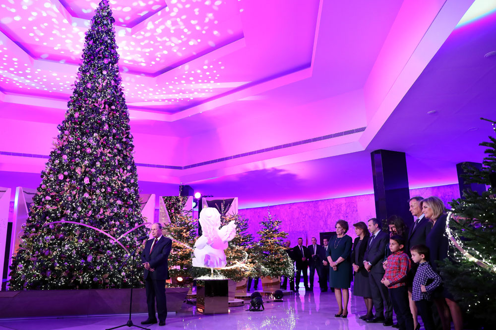 Հանրապետութեան նախագահ զօր. Միշել Աուն երէկ երեկոյեան լուսաւորեց նախագահական պալատի տօնածառը եւ մսուրը` ստանալով ընտանեկան լուսանկար մը: