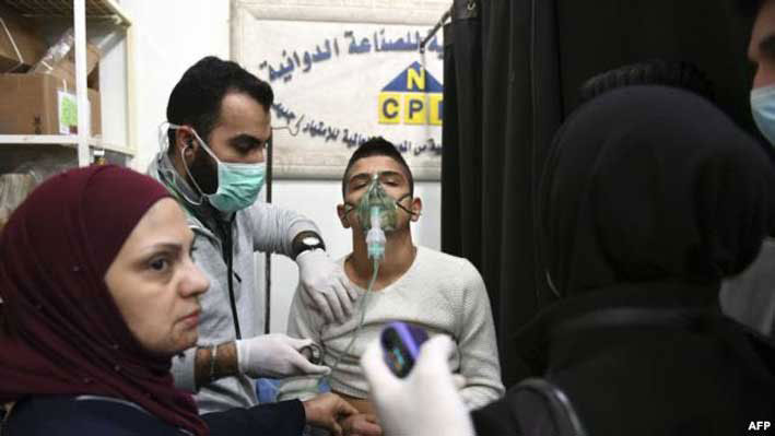 Նախորդ տարուան ապրիլին Սուրիոյ Խան Շէյխուն քաղաքին մէջ տեղի ունեցած քիմիական յարձակումը  տեղեկատուական եւ քաղաքական մեծ աղմուկ բարձրացուց: Զինեալ ահաբեկչական խմբաւորումներ կրկին սուրիական կառավարական ուժերը մեղադրեցին խաղաղ բնակիչներուն դէմ քիմիական զէնք կիրարկելու յանցանքով, մինչդեռ սուրիական կողմն ու Ռուսիոյ պաշտպանութեան նախարարութիւնը հաստատեցին, որ Սուրիոյ օդուժը հրթիռակոծած էր ահաբեկիչներուն զինապահեստներէն մէկը, ուր քիմիական մեծաքանակ զէնքեր պահուած էին: