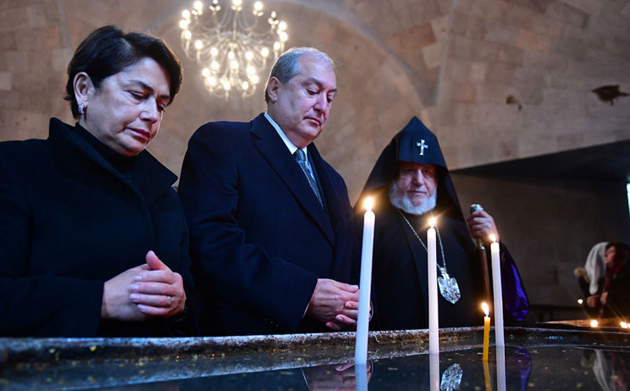 Հայաստանի նախագահ Արմէն Սարգսեանը իր կնոջ` Նունէ Սարգսեանին հետ այցելած է Մայր Աթոռ Սուրբ Էջմիածին եւ Սուրբ Յովհաննէս Մկրտիչ եւ Սուրբ Վարդան մատուռ-մկրտարանին մէջ ներկայ գտնուած է 1988-ի աւերիչ երկրաշարժի զոհերուն հոգեհանգստեան արարողութեան: