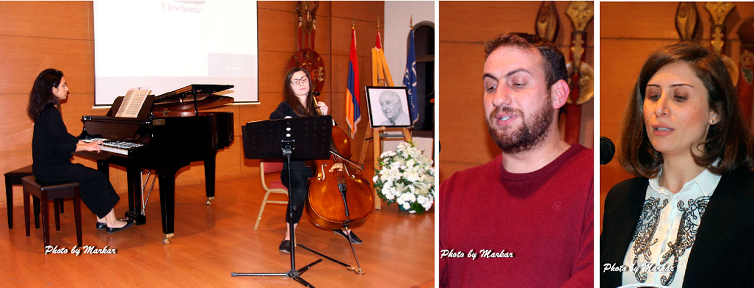 Տեղի ունեցաւ նաեւ գեղարուեստական յայտագիր, որուն ընթացքին դաշնամուրի վրայ Նարէ Աղասարգիսեանը եւ թաւ ջութակի վրայ Նայիրի Ղազարեան ներկայացուցին Մազմանեանի «Ոքալիզ» եւ Խաչատուրեանի «Անտանթինօ» եւ «Օրօր» կատարումները: Խաչիկ Հրակ Տեմիրճեանը ներկայացուց «Կոնտոլեզիա իմ սէր» թատերախաղէն «Անիպալ»-ի մենախօսութենէն հատուած մը: Արազ Գոճայեանը կարդաց Արծրունիին «Ալեկորիա» վէպէն հատուած մը: