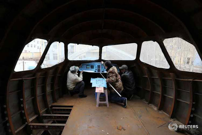 Իր այս ծրագիրը իրականացնելու համար կը գործածէ իր ամբողջ խնայողութիւնը` աւելի քան 2,6 միլիոն եուան (374 հազար տոլար): Իբրեւ օրինակ, ան կ՛առնէ իսկական Էրպաս A320 օդանաւի 1/80 աստիճանի վրայ փոքրիկ խաղալիքի չափով օրինակ մը: Ան համացանցին վրայ կը փնտռէ պատկերներ, կ՛ուսումնասիրէ չափերը, եւ, հակառակ քանի մը փոքրիկ սխալներու, կը շինէ իսկական չափով օդանաւը` իր կմախքով, թեւերով, օդաչուի խուցով, մեքենաներով եւ պոչով: Ընդամէնը ան կը գործածէ 60 թոն պողպատ: