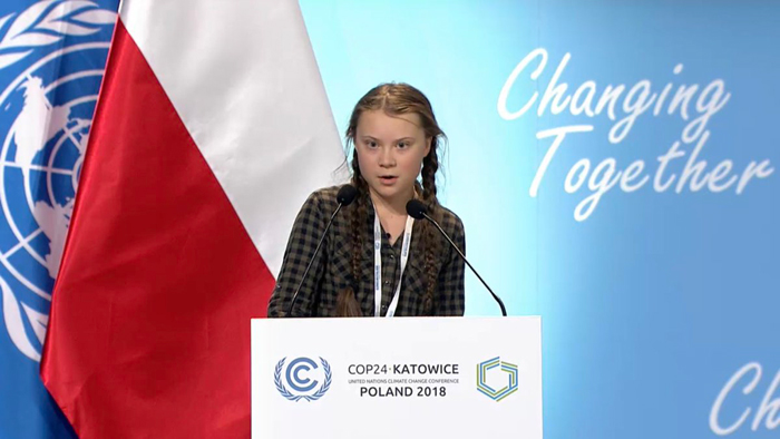 Այս ձեւով արտայայտուած է 15 տարեկան Կրեթա Թանտպըրկը` կլիմայի յատկացուած 24-րդ համագումարին ընթացքին, որ տեղի ունեցաւ դեկտեմբեր 2018-ին, Լեհաստանի մէջ: Ան չքաշուեցաւ իրականութիւնը ըսելու աշխարհի բոլոր ներկայացուցիչներուն առջեւ: