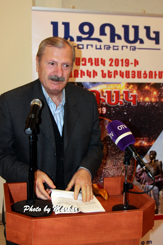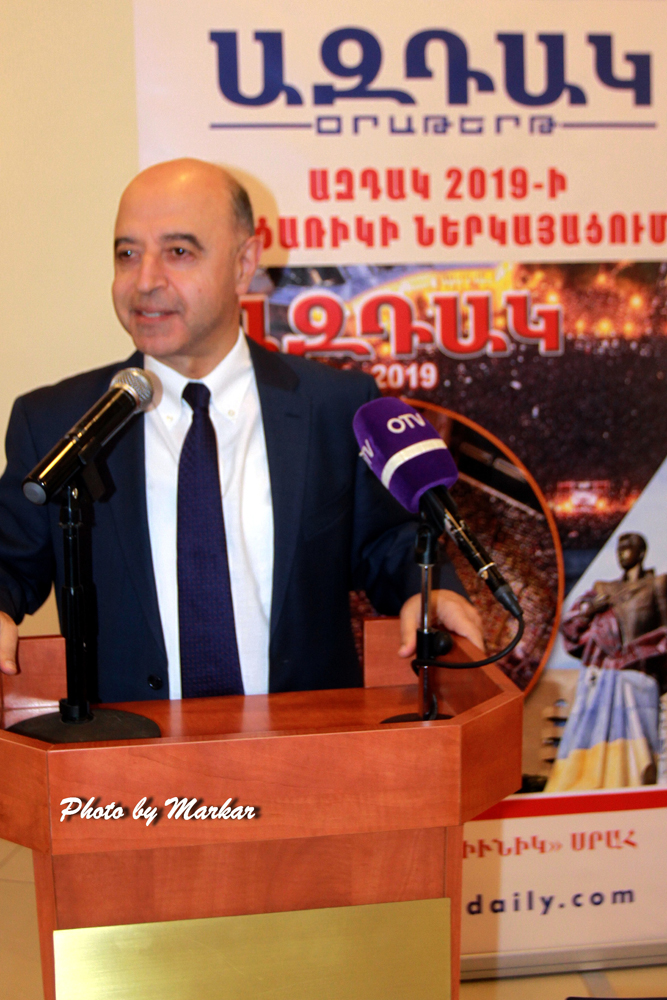 Ապա խօսք առաւ «Ազդակ»-ի բացառիկներու նախկին խմբագիր եւ «Ապագայ լրագրողներ»-ու դասախօս Վիգէն Աւագեան, որ «Հայ մամուլի տարուան» բացման լաւագոյն ձեւը նկատեց այդ հանդիսութիւնը, որուն ընթացքին զոյգ առիթներ կը նշուին` բացառիկի եւ երիտասարդ լրագրողներու փաղանգի մը ներկայացում: Ըստ անոր, 2019-ի բացառիկը մրցանշային կը նկատուի իր էջաթիւով, ստորագրութիւններու թիւով ու որակով: Վ. Աւագեան նաեւ կարեւոր նկատեց երիտասարդները հայ մամուլի ծառայութեան ընծայելու «Ազդակ»-ի նախաձեռնութիւնը` աւելցնելով, որ լրագրութեան ասպարէզը դիւրին չէ, ան կը կարօտի երկար շունչի, առարկայական մօտեցման եւ ամբողջական դատողութեան: Ան յոյս յայտնեց, որ երիտասարդներուն համար հաստատագիրներ ստանալը նոր մեկնակէտ կ՛ըլլայ հայ մամուլին ճամբով նորովի արժեւորում կատարելու երեւոյթներու եւ արժէքներու: