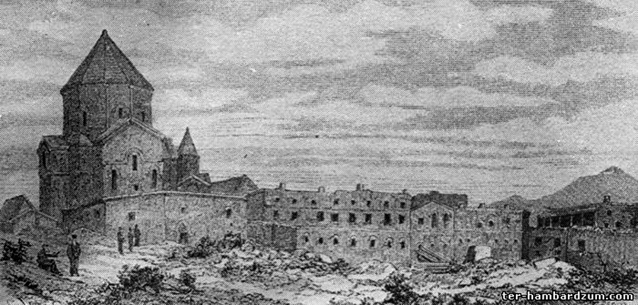 Աղթամարի Խաչատուր կաթողիկոս, որ 1864-ին, իր նախորդին` Պետրոս Բիւլբիւլի սպանութենէն ետք գահ բարձրացած էր, Պոլիս դատի կանչուած էր իբրեւ սպանութեան մեղսակից: Դատավարութիւնը, ընդմիջումներով ու ձգձգումներով, կը շարունակուէր, եւ Խաչատուր կաթողիկոս կը շարունակէր Պոլիս մնալ, սպասելով դատավարութեան վճիռին: