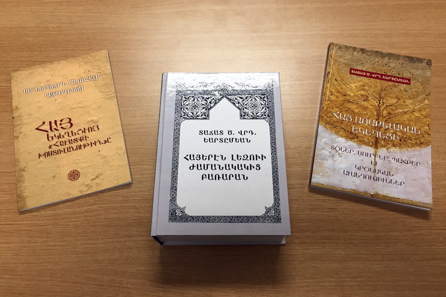 Գ) «Հայերէն լեզուի ժամանակակից բառարան»-ը, որ հայագիտական եւ լեզուաբանական կարեւոր նշանակութիւն ունի: Բառարանին մէջ հաւաքուած եւ բացատրուած են բազմահազար հայերէն բառեր: Շեշտը դրուած է նաեւ նորակազմ ու մասնագիտական բառերը միասին մէկտեղելու ջանքին վրայ: