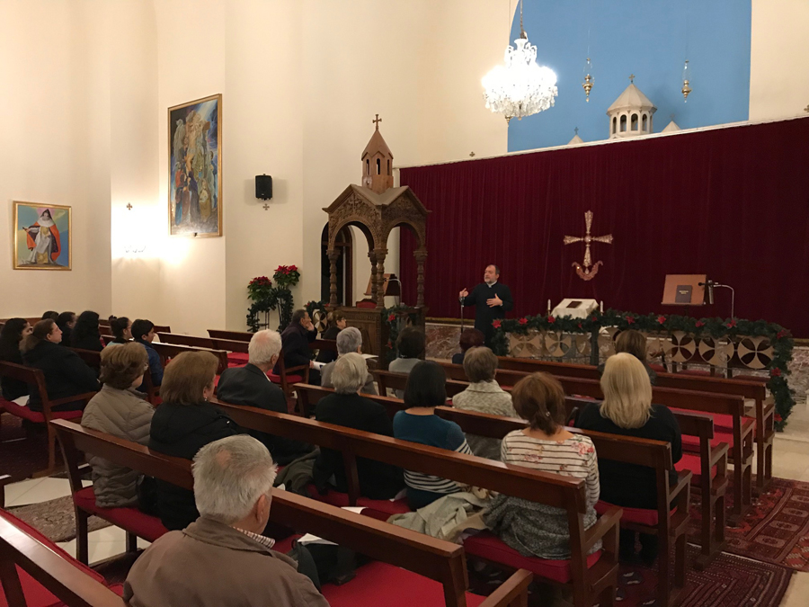 Սրբազան հայրը նախ բացատրեց պատճառը աւագ տօներ կոչուելուն եւ Ս. Ծնունդէն առաջ նշուելուն` յայտնելով, որ այս դասաւորումը կը միտէր սուրբ եկեղեցւոյ հաւատքին ու վարդապետութեան առաւել եւս ամրացման ու շինութեան` որպէս վէմի: Ապա ընդհանուր եւ մանրամասն գիտելիքներ փոխանցեց իւրաքանչիւրին համար` Աւետարանէն, Վարք Սրբոցէն ու այլ աղբիւրներէ մէջբերումներ կատարելով, միաժամանակ մերօրեայ կեանքին եւ դէպքերուն կապելով: Ան յատուկ շեշտադրումով անդրադարձաւ Ամանորին, Կաղանդին, կաղանդչէքին, տօնածառին, Ս. Բարսեղ հայրապետին եւ Կաղանդ պապայի ու Ձմեռ պապիին մեր կեանքին մէջ մուտքին, հայկական ու արեւմտեան երկիրներու «Սանթա Քլոզի» մեկնաբանութեան, սովորութիւններու եւ աւանդութիւններու փոփոխութեան ու արդիականացման: Լսարանի վերջին բաժնով սրբազանը շեշտը դրաւ խթման, ճրագալոյցի, ջրօրհնէքին եւ Յիսուսի ծննդեան, 25 դեկտեմբերի եւ 6 յունուարի տօնակատարութեանց բացատրութեանց ու լուսաբանութեան վրայ:
