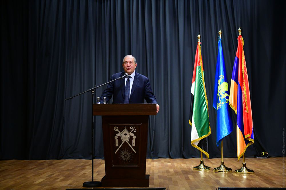 «Այս երեք-չորս օրուան ընթացքին Արաբական Միացեալ Էմիրութիւններուն մէջ իմ իւրաքանչիւր հանդիպումի ընթացքին ես մէկ գնահատական լսած եմ հայերուն մասին` ազնիւ, աշխատասէր, նուիրեալ, բարի, հայրենասէր մարդիկ, որոնք այսօր սփռուած ըլլալով աշխարհի մէջ, աշխարհի բոլոր կէտերէն կրնան հայրենիք բերել իրենց գիտելիքը, կարելիութիւնները, կապերը, ցանկութիւնն ու աշխատանքը: