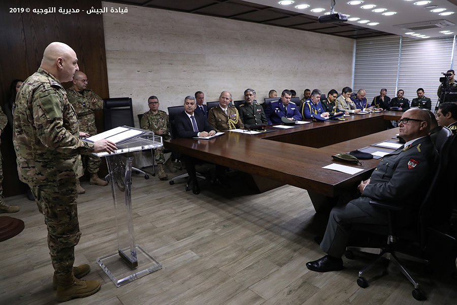 Բանակի հրամանատարը շնորհակալութիւն յայտնեց բոլոր երկիրներուն, որոնք կ՛օժանդակեն լիբանանեան բանակին` ըլլայ ան ահաբեկչութեան դէմ պայքարով, ՖԻՆԻՒԼ-ի առաքելութեան մասնակցութեամբ, թէ զինուորական օժանդակութիւն յատկացնելով: «Այդ կեցուածքը կը փաստէ լիբանանեան բանակին նկատմամբ ձեր վստահութիւնը, որովհետեւ դուք զայն հիմնական գործընկեր կը նկատէք` խաղաղութեան պահպանումին նպատակով: Այդ գործակցութեան շնորհիւ է, որ կարելի եղաւ բարելաւել լիբանանեան բանակին մարտական ու գումակային կարողութիւնները, եւ լիբանանեան բանակը յաւելեալ զօրակցութեան կը ձգտի», ըսաւ ան: