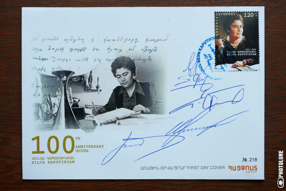 Տեղեկացնենք, որ Սիլվա Կապուտիկեանին ծննդեան 100-ամեակին նուիրուած ձեռնարկներու ծիրին մէջ «Հայփոստ»-ին կողմէ շրջանառութեան մէջ դրուած է մեծանուն գրողին նամականիշը:
