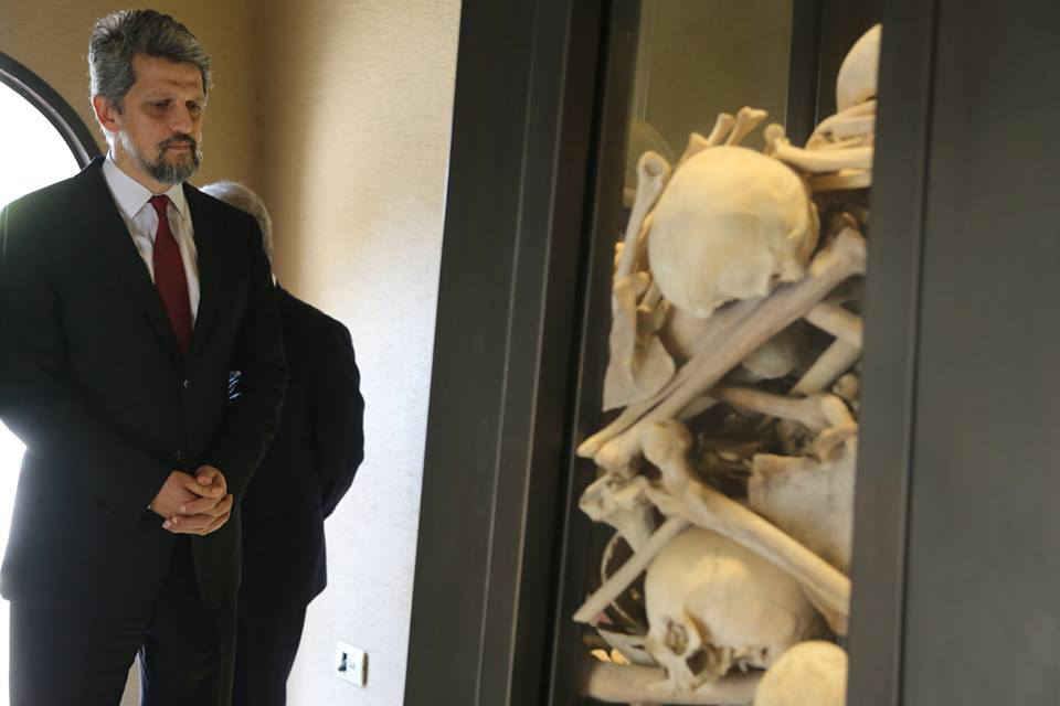Ապա երեսփոխան Կարօ Փայլանը այցելեց մայրավանքի շրջափակին մէջ գտնուող Սրբոց Նահատակաց յուշարձան եւ իր յարգանքը մատուցեց Ցեղասպանութեան զոհ 1,5 միլիոն սրբացեալ նահատակներու յիշատակին: