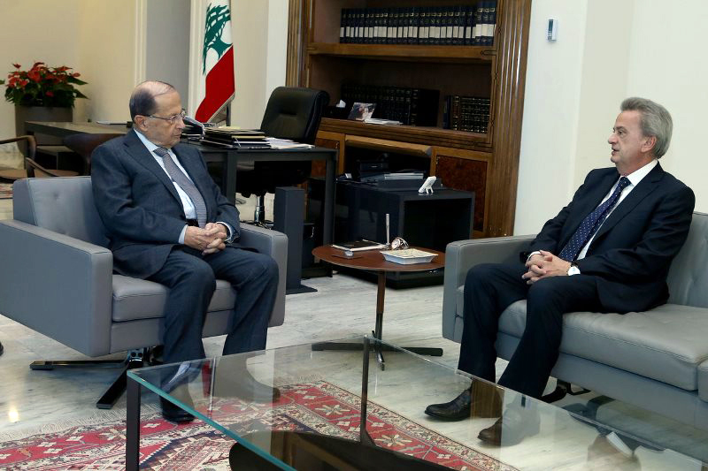 Հանրապետութեան նախագահ զօր. Միշել Աուն երէկ առաւօտեան նախագահական պալատին մէջ ընդունեց Կեդրոնական դրամատան կառավարիչ Ռիատ Սալամէն, որուն հետ քննարկեց երկրին ելեւմտական իրավիճակը` նկատի ունենալով Լիբանանի մէջ տեղի ունեցած քաղաքական վերջին իրադարձութիւնները: