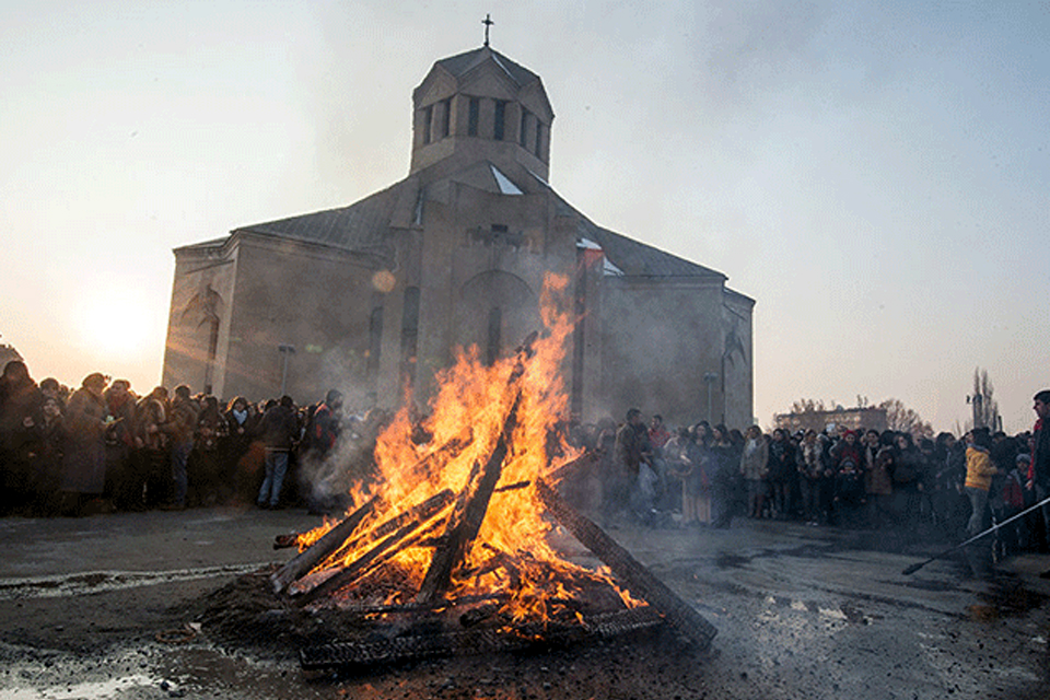 Եկեղեցական մեր հայրերը Քրիստոսը նկատելով որպէս «ճշմարիտ լոյս» եւ «կենդանի հուր»` խոտոր չեն համարեր հայկական հեթանոսական սովորութիւն մը, ինչպէս` խարոյկ վառելու եւ անոր վրայէն ցատկելու աւանդութիւնը, որ նուիրագործուած է եկեղեցւոյ կողմէ: Տօնը պահած է իր արտաքին ձեւը, սակայն ստացած է նոր խորհուրդ ու իմաստ եւ կապուած է քառասնօրեայ Յիսուսի տաճարին ընծայուելու տօնին հետ: Հոգեւորն ու աշխարհիկը, քրիստոնէականն ու հեթանոսականը միաշաղախուած են իրարու եւ դարձած` խորախորհուրդ աւանդութիւն մը: Եթէ հեթանոսները Աստուծոյ պատիւը կրակին կը մատուցէին, ապա քրիստոնեաները կրակը կը ծառայեցնեն Աստուծոյ: Ս. Գրիգոր Տաթեւացին (14-րդ դար) Տեառնընդառաջի տօնին առիթով գրած է. «Ինչպէս Տիրոջը տաճարին ընծայելու ժամանակ ժողովուրդը ջահերով եւ կանթեղներով ելաւ Անոր ընդառաջ, մենք ալ նոյն օրինակով կրակ ու ջահ կը վառենք եւ Տիրոջ գալստեան նախատօնակը կը կատարենք»: