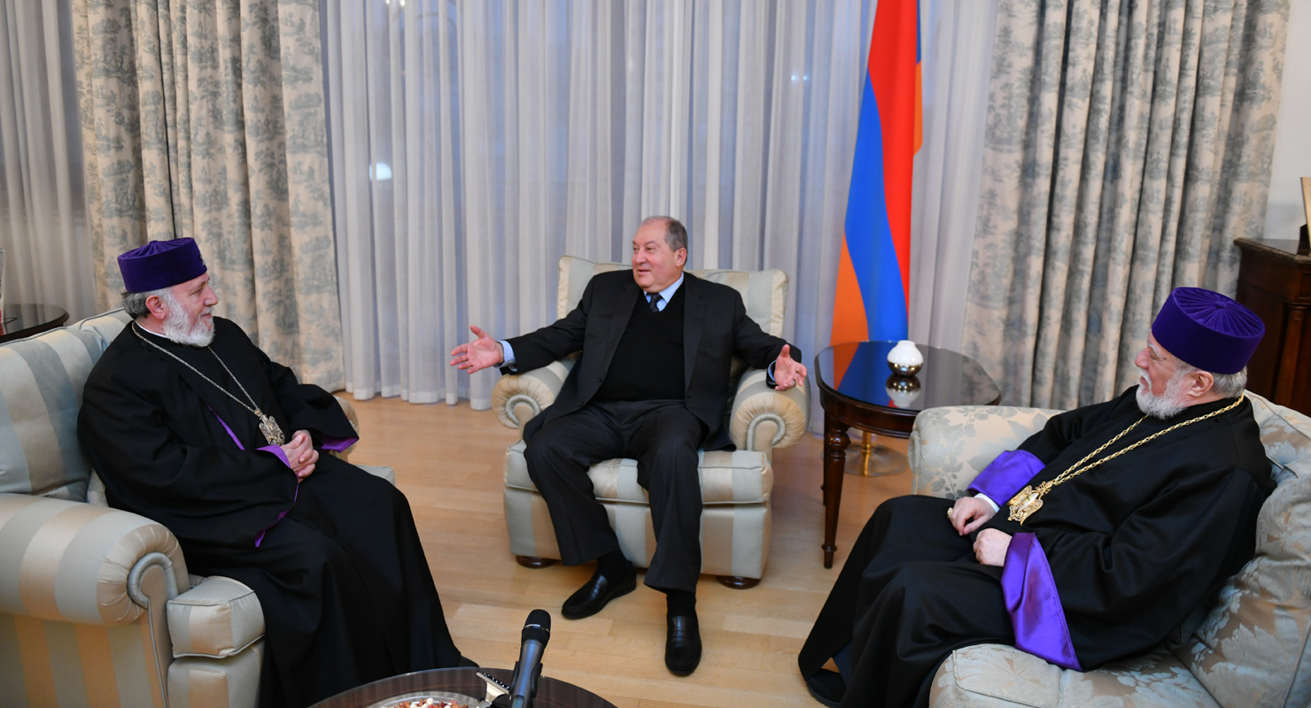 Հայաստանի Հանրապետութեան նախագահ Արմէն Սարգսեան երէկ հիւրընկալած է Ամենայն հայոց Գարեգին Բ. եւ Մեծի Տանն Կիլիկիոյ Արամ Ա. կաթողիկոսները: