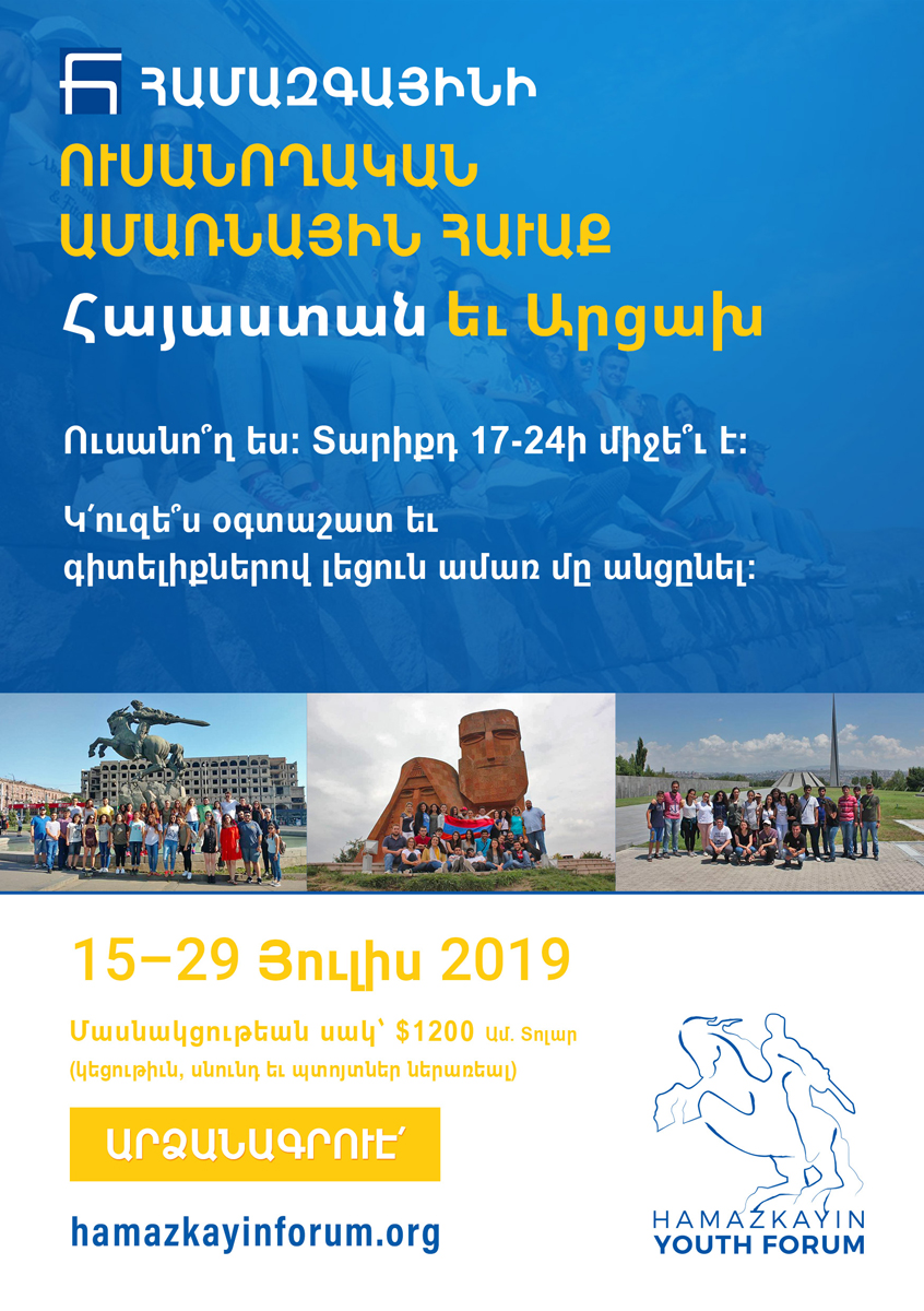 2019-ի հաւաքը պիտի կայանայ 15-29 յուլիսին: Արձանագրութիւնները առցանց են http://hamazkayinforum.org/register/