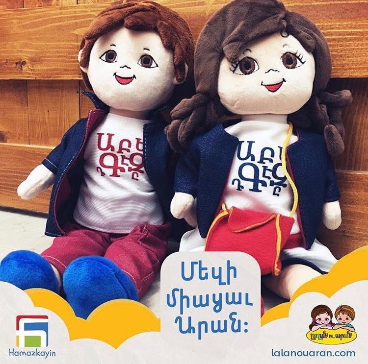 Մանկավարժներու թելադրանքին անսալով` նոյն այս խմբակը պատրաստեց Լալայի ու Արայի արեւմտահայերէն խօսող պուպրիկը, որ մեծ տարածում գտաւ ամբողջ աշխարհի հայ մանուկներուն մօտ: Անոնք կը պատրաստուին Հայաստանի «Մանկան» գործարանին մէջ: Պատրաստուած են նաեւ` պայուսակ, գրչատուփ, պիտակ, որմազդ, շապիկներ, վերարկուներ, եւ այս բոլորը կը կրեն Լալայի ու Արայի պատկերները: Այս առարկաները կը վաճառուին զանազան գաղութներու Համազգայինի կեդրոններուն մէջ: Նպատակն է հայ մանուկին հրամցնել հայկական ինքնութեամբ հերոսներ իրենց առարկաներով, այս հերոսները կը դառնան մեր մանուկներուն մնայուն ընկերակիցն ու խաղակիցը: