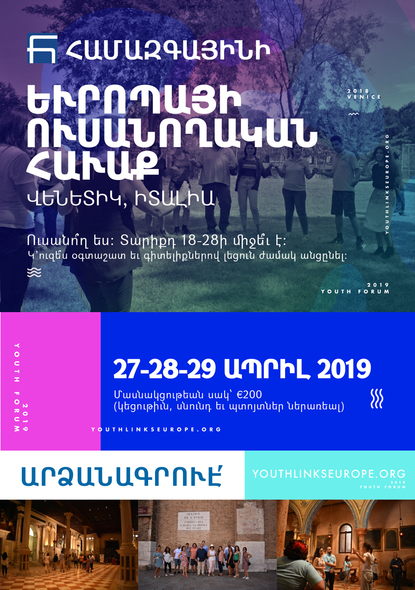 Արձանագրութիւնները կը կատարուին առցանց` http://www.youthlinkseurope.org/register/