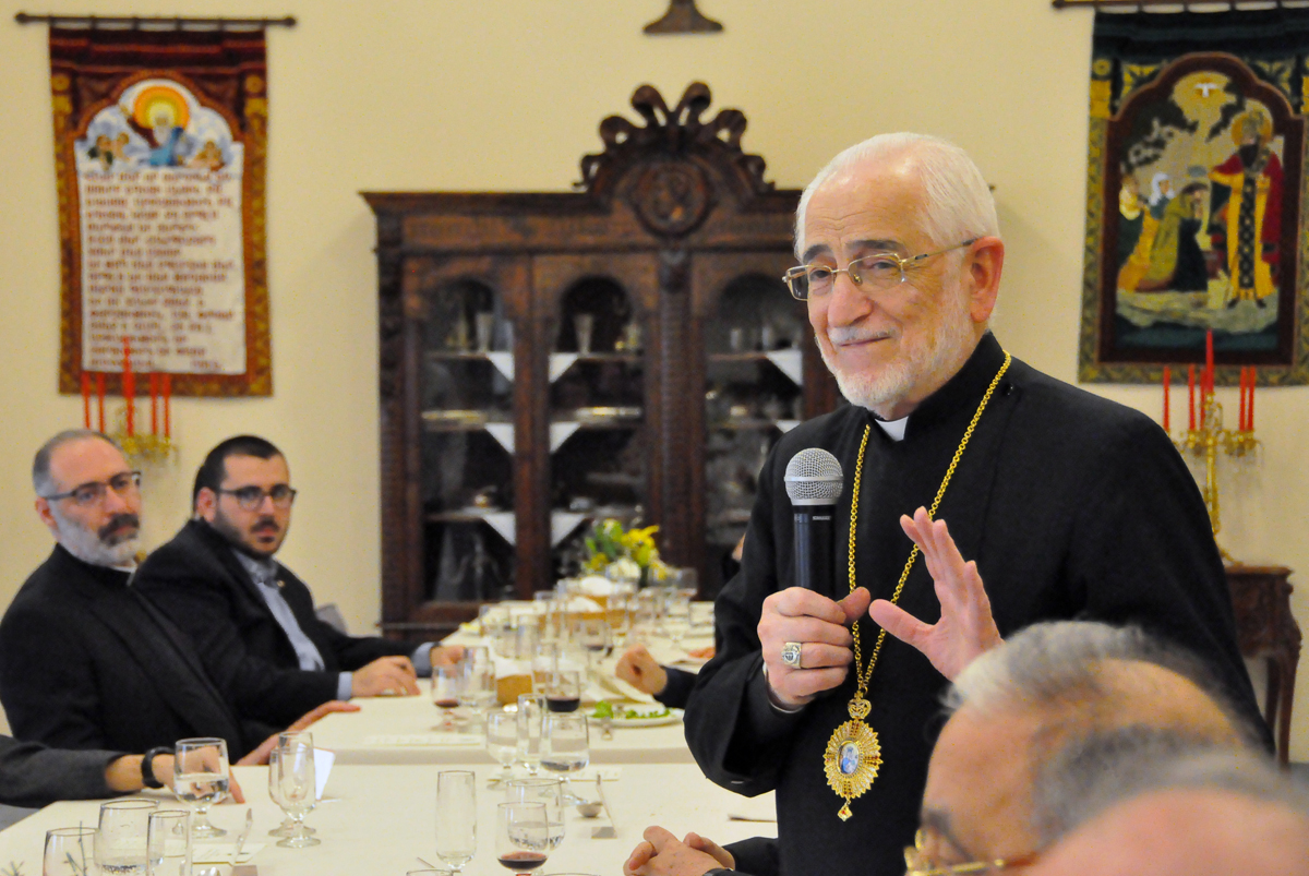 Այնուհետեւ ներկաներուն անունով շնորհակալութիւն յայտնեց սրբազան Վասիլը եւ, կարտինալ Լէոնարտօ Սանտրիի ողջոյնները փոխանցելէ ետք, իտալերէնով ընդգծեց համակեցութեան կարեւորութիւնը` նշելով, որ ինչպէս 800 տարիներ առաջ Ս. Ֆրանչիսկոսի Եգիպտոս այցելութեան եւ իսլամ հոգեւորականի հանդիպման օրինակին հետեւելով` Ֆրանչիսկոս քահանայապետը այցելեց Արաբական Միացեալ Էմիրութիւններ: Ապա ան գնահատեց հայ ժողովուրդին վարքը եւ բիւրաւոր հայ նահատակ սուրբերուն համբերութիւնն ու հայկականութիւնը պահելու կամքն ու կտակը: «Դո՛ւք` հայերդ, միշտ պահած էք ձեր հայ ինքնութիւնը` հակառակ տառապալի պայմաններուն ու զրկանքներուն: Իսկապէս դուք ցայտուն օրինակ մըն էք Միջին Արեւելքի ժողովուրդներուն: Իսկ մենք, մեր կարգին, Աստուծոյ կամքով եւ մեր կարողութեան ներած չափով պիտի փորձենք առաւելագոյն կերպով պահել եւ պահպանել բոլոր արեւելեան եկեղեցիները», ըսաւ սրբազանը: