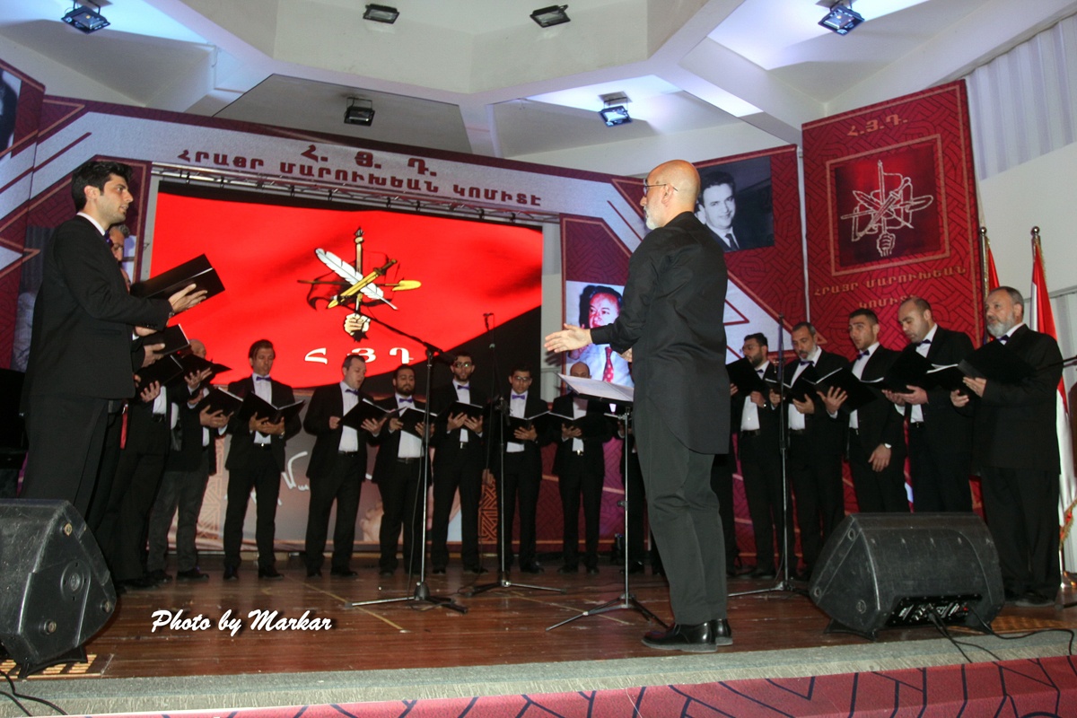 Աւարտին քանի մը երգով հանդէս եկաւ Համազգայինի «Գուսան» երգչախումբը` ղեկավարութեամբ Գրիգոր Ալոզեանի: