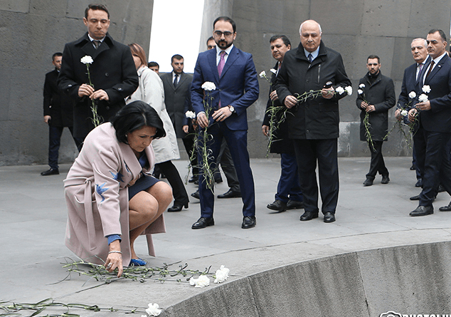 Վրաստանի նախագահը ծաղիկներ զետեղած է Հայոց ցեղասպանութեան զոհերուն յիշատակը յաւերժացնող անմար կրակին մօտ: