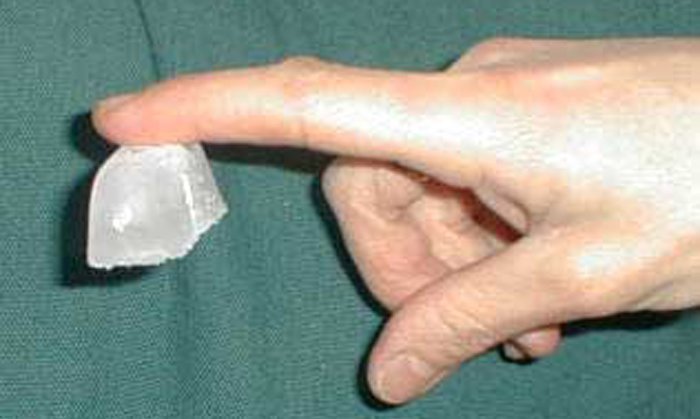 Սառոյցի կտորները շատ պաղ են. երբ մենք անոնց կը դպչինք, մեր մատները, որոնք աւելի տաք են, քիչ մը կը հալեցնեն սառոյցի կտորին մակերեսէն բաժին մը: Այս ջուրը կը մտնէ մեր մորթին տակ եւ անմիջապէս կը սառի ցուրտին պատճառով: Սառոյցի կտորը դարձեալ կը կազմուի, սակայն մեր մորթը անոր մէջ բանտարկուած կը մնայ: