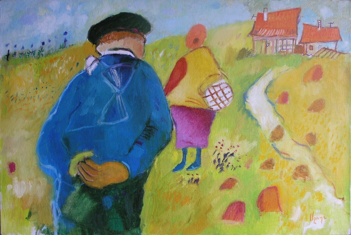 Պ.- Սկզբում ճեպանկարներ, գծանկարներ եմ արել, որոնք գիւղական պատկերներ էին, յետոյ արդէն ուրիշ թեքնիքի եմ անցել, այսօր փայտի վրայ էլ եմ նկարում, կտաւի վրայ էլ, փորձում եմ ամէն ինչին շունչ տալ, բայց բնութեան, գիւղի պատկերները միշտ կան իմ արուեստում: Երբեմն մի իր եմ տեսնում, որը թւում է թէ լքուած իր է, բայց ես նրա մէջ տեսնում եմ արուեստի, նկարչութեան գծեր: Փարիզի թանգարաններոմ էլ, երբ շրջում էի, տեսնում էի, որ յայտնի նկարիչները նոյնպէս ունեցել են անշունչ իրի, առարկայի մէջ արուեստ տեսնելու այդ ձգտումը: Բնութիւնն է ինձ միշտ ներշնչել: Ի հարկէ ընտանիքս, սրտամօտ մարդիկ միշտ կողքս են, ներշնչում են: Հայ եւ օտար շատ ընկերներ ունեմ, նրանց մէջ շատ են նաեւ սփիւռքահայերը, մարդիկ գալիս են, նկարներս հաւանում են, գնում են եւ յետոյ որպէս անծանօթ չեն մնում, միշտ կապ են պաշտպանում, հարազատանում են…