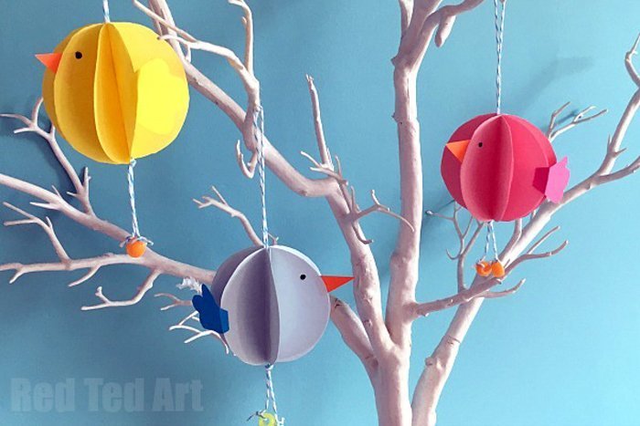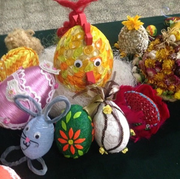 Գունաւոր թուղթերու (օրինակի համար` դեղին, վարդագոյն, նարնջագոյն` ճուտիկներուն համար, ճերմակ, բաց վարդագոյն, բաց կապոյտ, բաց մանիշակագոյն` նապաստակներուն համար)` խէժի, մկրատի, թելի, ուլունքներու: