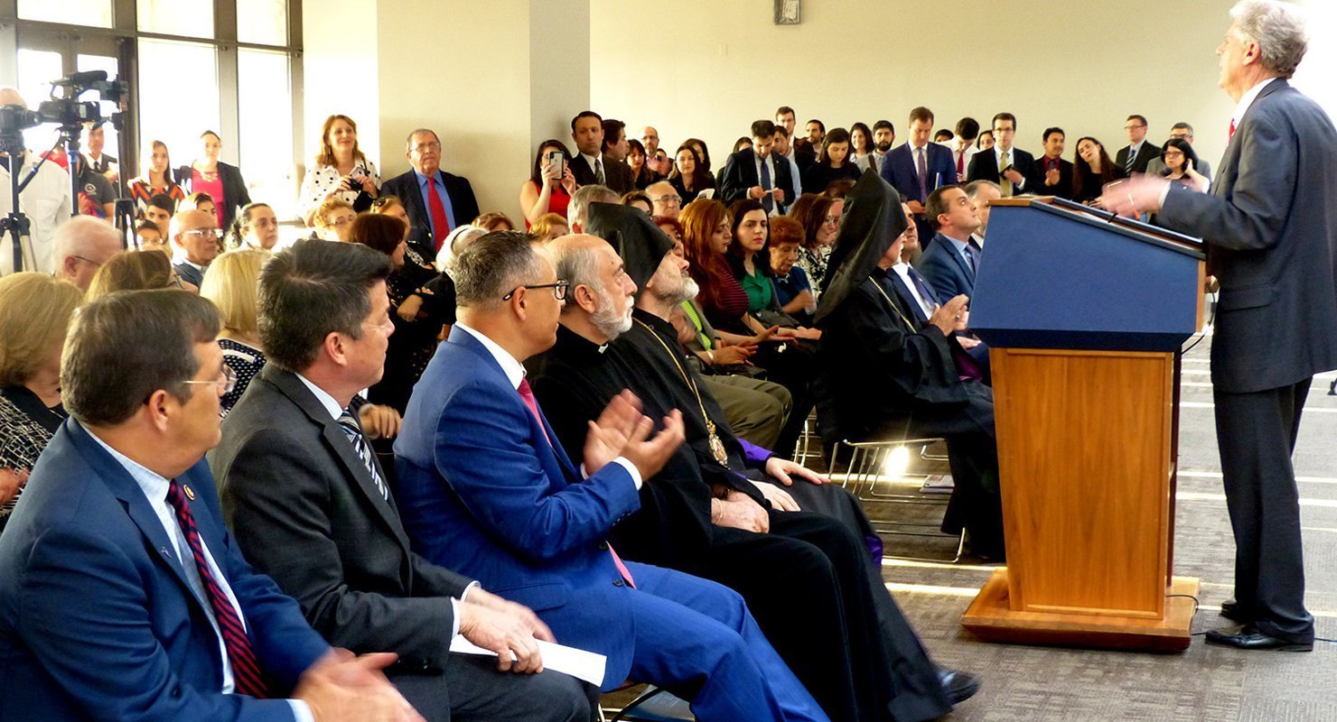 Ձեռնարկին հանդիսավարութիւնը ստանձնեց Քոնկրեսի անձնակազմի երկարամեայ անդամներէն Էլիս Քենտէրեան-Արընսըն, իսկ քոնկրեսականներուն կողքին ելոյթ ունեցողներուն շարքին էին` Միացեալ Նահանգներու մէջ Հայաստանի դեսպան Վարուժան Ներսէսեան, Արցախի ներկայացուցիչ Ռոպերթ Աւետիսեան, Հայաստանի մէջ Միացեալ Նահանգներու նախկին դեսպան Ճոն Էվընզ եւ Քոնկրեսի Հայ պաշտօնեաներու միութեան համաատենապետ Մարիա Մարտիրոսեան: Ներկայ էր նաեւ Մերիլընտի նահանգային խորհրդարանի անդամ Լորիկ Չարխտեան: