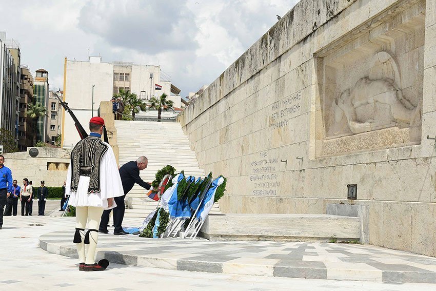 Յանուն Յունաստանի հայութեան՝ Հայոց Ցեղասպանութեան 104րդ տարելիցին առիթով եւ ի յիշատակ հայոց սրբացեալ նահատակներուն, Անծանօթ Զինուորի յուշադամբանին ծաղկեպսակ զետեղեց ընկ. Միհրան Քիւրտօղլեան։