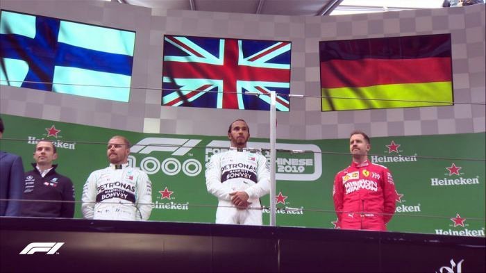 «Մերսետես»-ի անգլիացի վարորդ Լուիս Հեմիլթըն արձանագրեց իր արհեստավարժ ասպարէզին 75-րդ յաղթանակը, երբ հանդիսացաւ առաջին: Անոր խմբակից Վալթերի Պոթթաս (Ֆինլանտա) հանդիսացաւ երկրորդ, մինչ փոտիում բարձրացող երրորդ վարորդը հանդիսացաւ Սեպասթիան Վեթել («Ֆեռարի»):