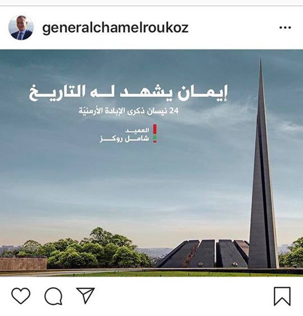 Հանրապետութեան նախկին նախագահ զօր. Միշել Սլէյման կը գրէ. «Այսօր ամբողջ աշխարհը կը յիշէ Հայոց ցեղասպանութեան յիշատակը»:
