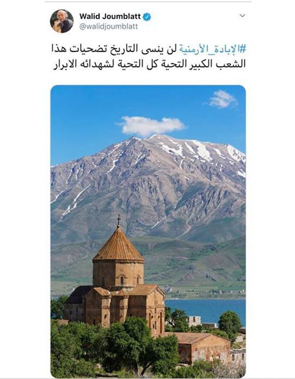 Ընկերվար յառաջդիմական կուսակցութեան ղեկավար Ուալիտ Ժոմպլաթ Հայոց ցեղասպանութեան 104-ամեակին առիթով կը գրէ. «Կ՛ողջունեմ հայ ժողովուրդը եւ կը խոնարհիմ անոր նահատակներուն յիշատակին առջեւ: Պատմութիւնը պիտի չմոռնայ այս վեհ ժողովուրդին զոհողութիւնները»: