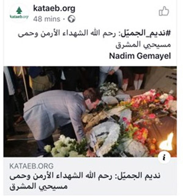 Փաղանգաւոր կուսակցութեան երեսփոխան Նետիմ Ժեմայէլ թիութըրեան իր էջին վրայ տեղադրեց Անթիլիասի մայրավանքին մէջ գտնուող Հայոց ցեղասպանութեան զոհերուն աճիւնները ամփոփող Ս. Ստեփանոս մատրան դիմաց ծաղկեպսակի զետեղման լուսանկարը եւ գրեց. «Աստուած ողորմի հայ նահատակները եւ պահպանէ Մերձաւոր Արեւելքի քրիստոնեաները»: